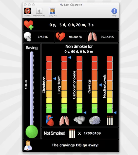 For under a dollar, kick your horrible smoking habits today! This app provides a visual way for one who needs other motivators such as money. Each day you keep track, pushing yourself to stop little by little. You enter the number of cigarettes and how many you smoke. It keeps track of the monetary value you save from not smoking. Available on the IOS and created by DocSoft Apps. This is a fairly new app with little ratings but is another resource! While it may seem tedious and possible to forget to update at times, it is another reminder for yourself that you are trying to quit.
